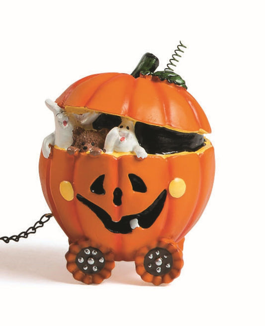 Halloween Pumpkin Train Decoration 14 Inch Metal Pumpkin Cart with LED Lights, Vintage Fall Harvest Table Centerpiece, Autumn Home Décor Ornament